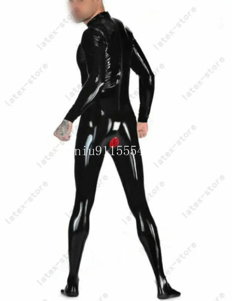 Сексуальный полный Чехол ручной работы унисекс латексный костюм с красным анальным презервативом носки облегающие Трансвеститы на молнии сзади боди для мужчин