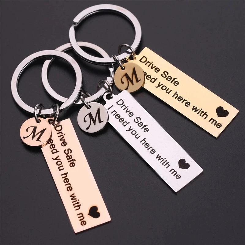 Сделай Сам на заказ, искусственное кольцо с 26 знаками, надписями, брелоками для автомобильных ключей, украшениями, гравировкой, безопасным приводом, я хочу, чтобы вы были здесь со мной