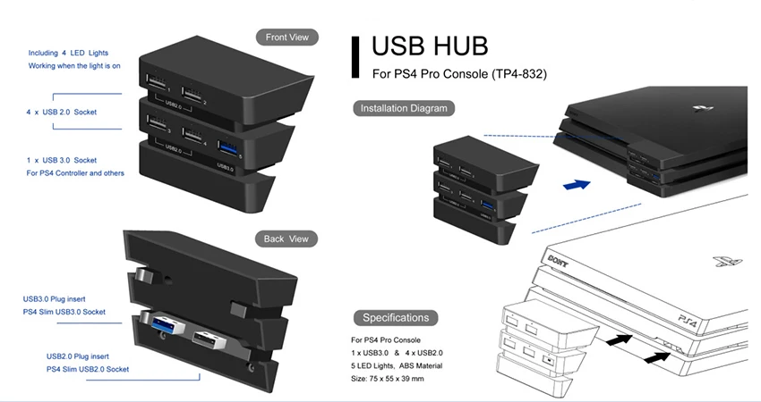 Дополнительный usb-хаб для PS4 Pro, аксессуары с 5 портами USB 3,0 ...
