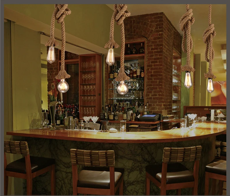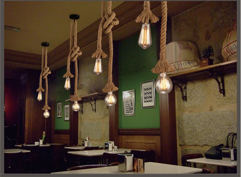 Ретро подвесные светильники из пеньковой веревки, винтажные потолочные светильники из ротанга, светодиодная Подвесная лампа Эдисона для дома, кухни, гостиной, детской лампы