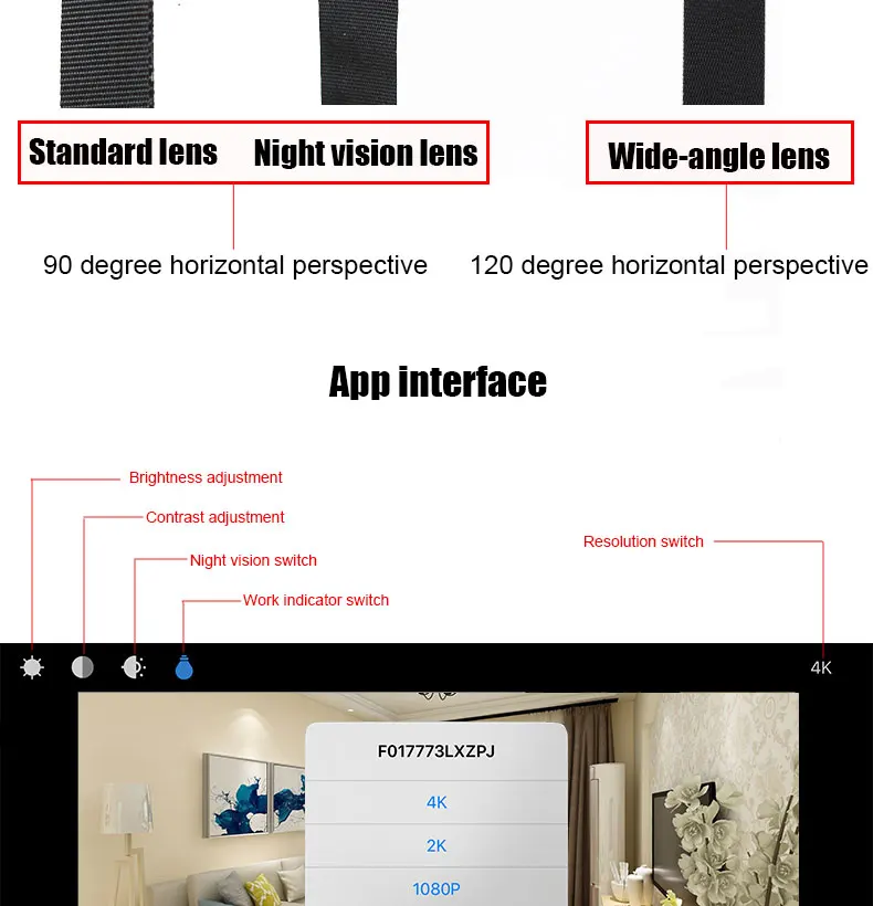 Это сетевая камера. Вы не можете просматривать или записывать видео в реальном времени после завершения настройки сети в приложении для смартфона в режиме P2P. Вы можете просматривать или записывать видео в реальном времени в любое время. Особенности: Запись аудио и видео в реальном времени Разрешение видео 1080P/720P/640P/480P Функция Wi-Fi IP-сети Поддержка смартфона планшета APP удаленного просмотра и управления Поддержка одновременного доступа 4 пользователей Поддержка просмотра и управления компьютером Угол обзора объектива 90 градусов Поддержка записи детектива движения Поддержка карт Micro SD объемом 64 ГБ (SD-карта не входит в комплект) Круглое хранилище Поддержка записи и зарядки одновременно Параметры: Разрешение видео: 4k/1080P/720P Формат видео: ASF Частота кадров видеозаписи: 25/30fps Угол обзора линзы: 90/120 градусов Микрофон: Встроенный Память: поддержка карт Micro 64 Гб в макс. Мин. Освещение: 2 люкс Операционная система смартфона: iPhone iPad или Android Комплектация: 1 мини-камера WiFi 1 x коробка для батарей (не включает батарею 18650) 1 x Кабель 1 Руководство пользователя