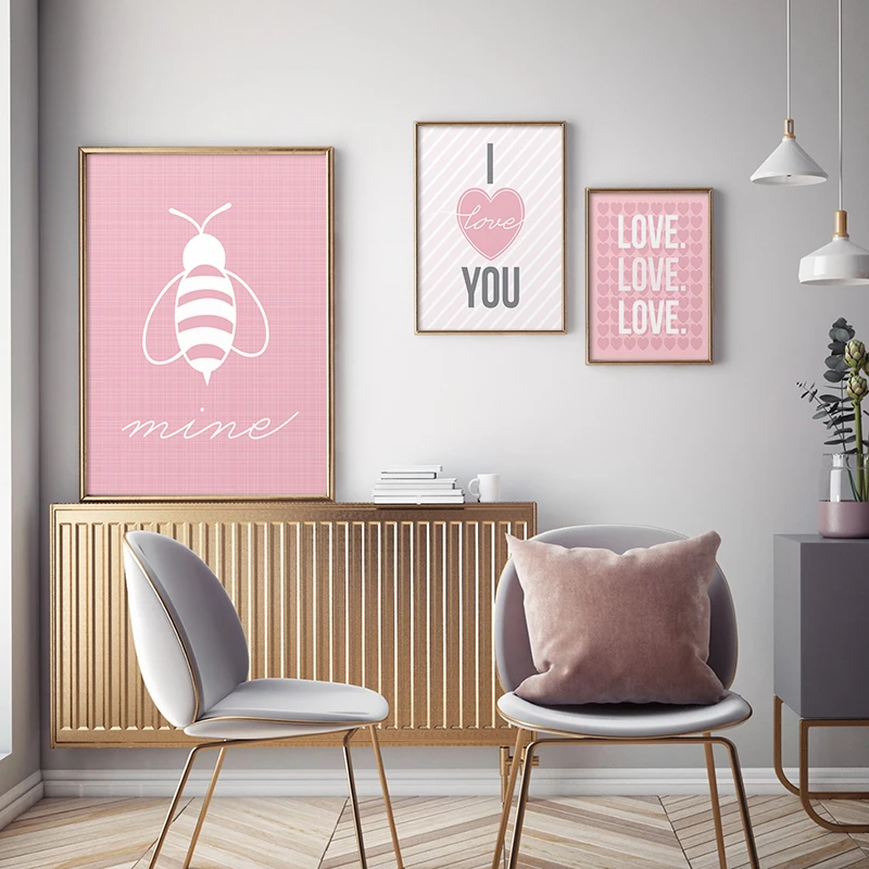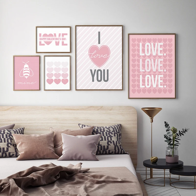 Скандинавский розовый постер на День святого Валентина, принт любви, простое настенное искусство, декоративная картина на холсте, картина для гостиной, украшение для дома