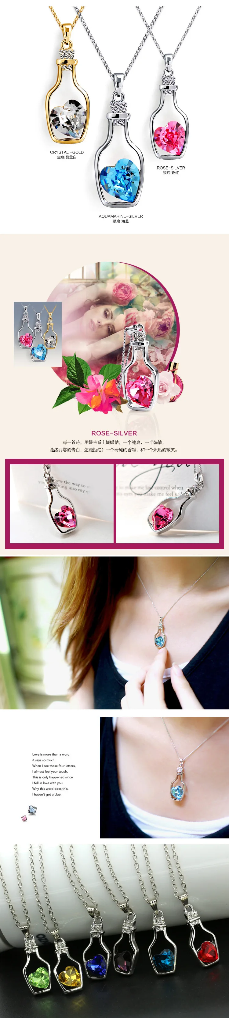 1 шт., лидер продаж, украшения для автомобиля, модное ожерелье с подвеской в виде кристаллов для женщин, Очаровательное ожерелье с подвеской в виде бутылки для желаний