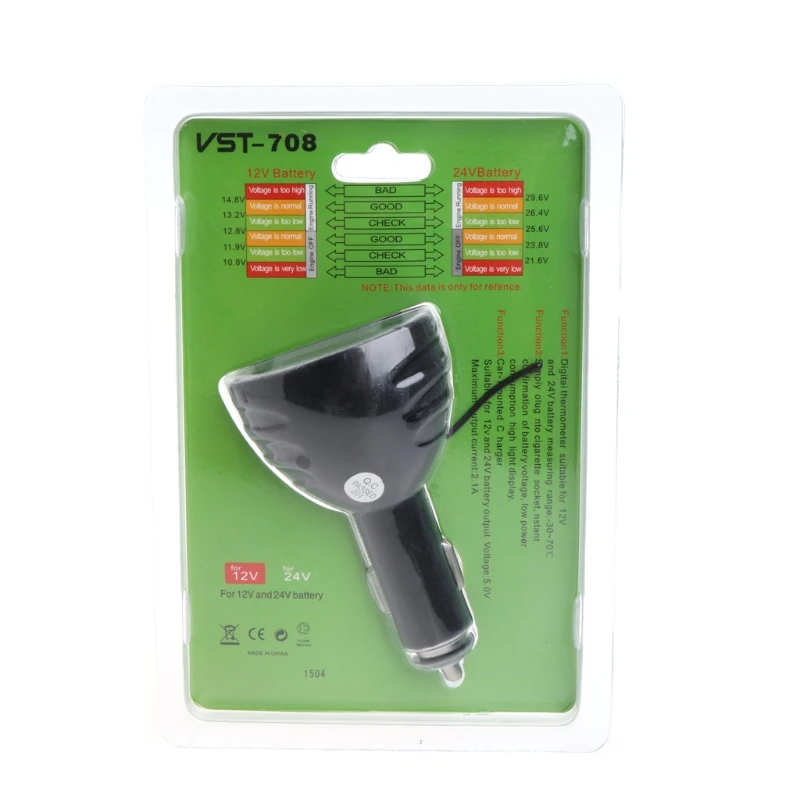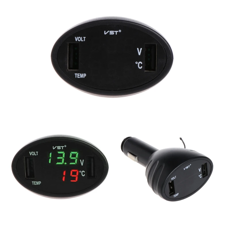 Особенности:100% новый и высокое качествоМожет измерить напряжение вашего автомобиля, чтобы избежать чрезмерного токаИзмерьте температуру внутри автомобиля и быстро зарядите телефон2-Порты и разъёмы USB Зарядное устройство можно заряжать портативным зарядным устройством для двух разных устройств одновременноКомпактный дизайн, легко носить с собой, удобно использоватьПросто подключите к прикуривателю, мгновенное подтверждение напряжения батареи, низкое энергопотребление и высокий светильникСветодиодный дисплей, приятный на видХарактеристики:Материал: пластик + металлЦвет: черныйСветильник дисплея цвет: синий + красный/зеленый + красныйНапряжение: 12 В/24 ВВыходное напряжение: 5,0 VМакс. Выходной ток: 2.1AДиапазон измерения напряжения: 0-30 вДиапазон измерения температуры: -30 °C-70 °CРазмер: около 97x5 5 мм/3,82x2,17 "(LxW)Количество: 1 шт.Примечание: Пожалуйста, учитывайте погрешность в 1-3 мм из-за ручного измерения. Пожалуйста, убедитесь, что вы не возражаете, прежде чем сделать ставкуИз-за разницы между различными мониторами изображение может не отражать фактический цвет товара. Спасибо!