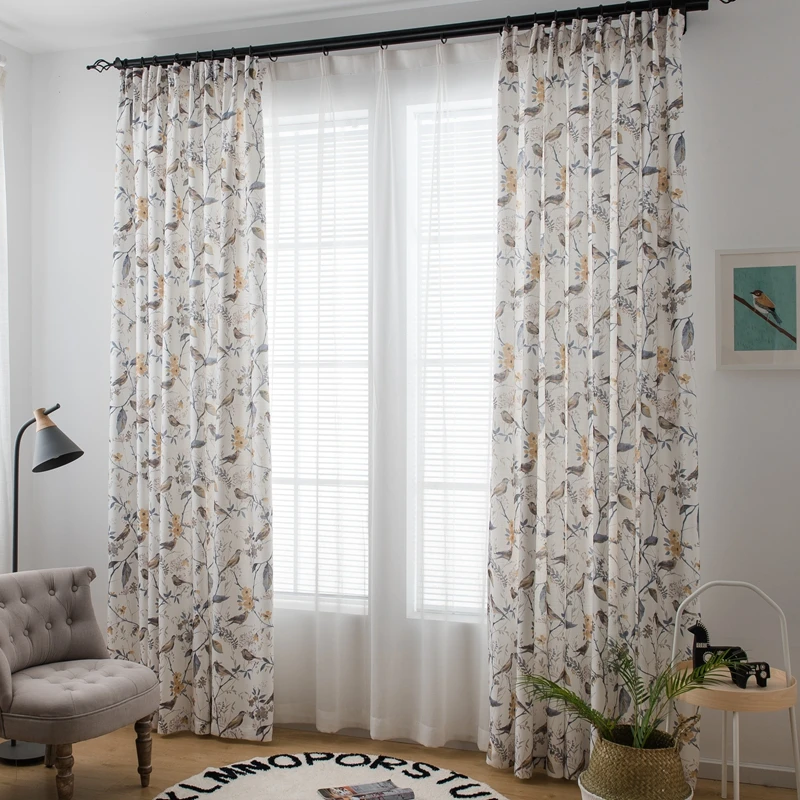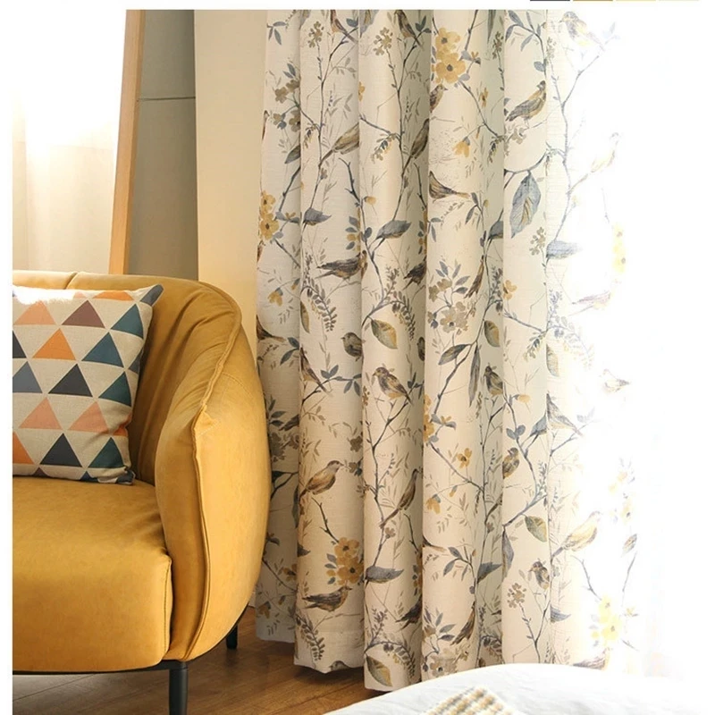 Занавески с птицами и цветочным узором для гостиной, винтажный стиль, затемняющие шторы для раздвижных дверей и окон