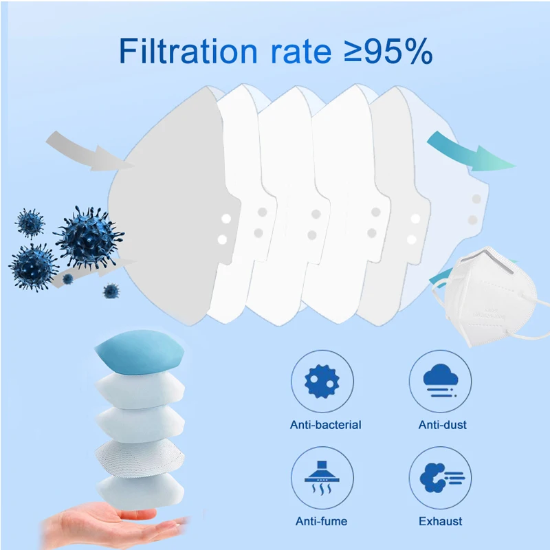 100 шт. KN95 защитная маска 5-Слои PM2.5 Анти-туман сильный FFP2 ух...