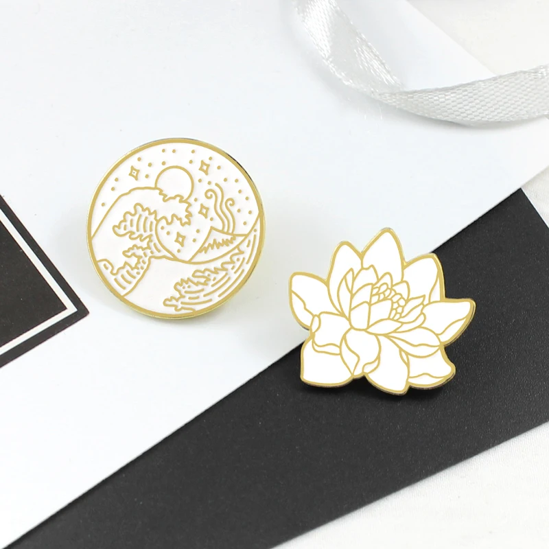 Брошь в виде лотоса, волны, круга, морского побережья, звезды, Луны, океана, растений, эмалированная булавка, значок для сумки, лацкан, шляпы, пальто, нейтральные японские подарки друзьям
