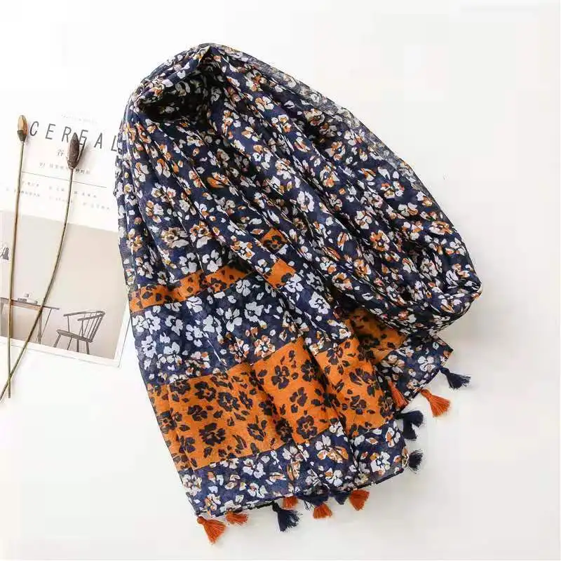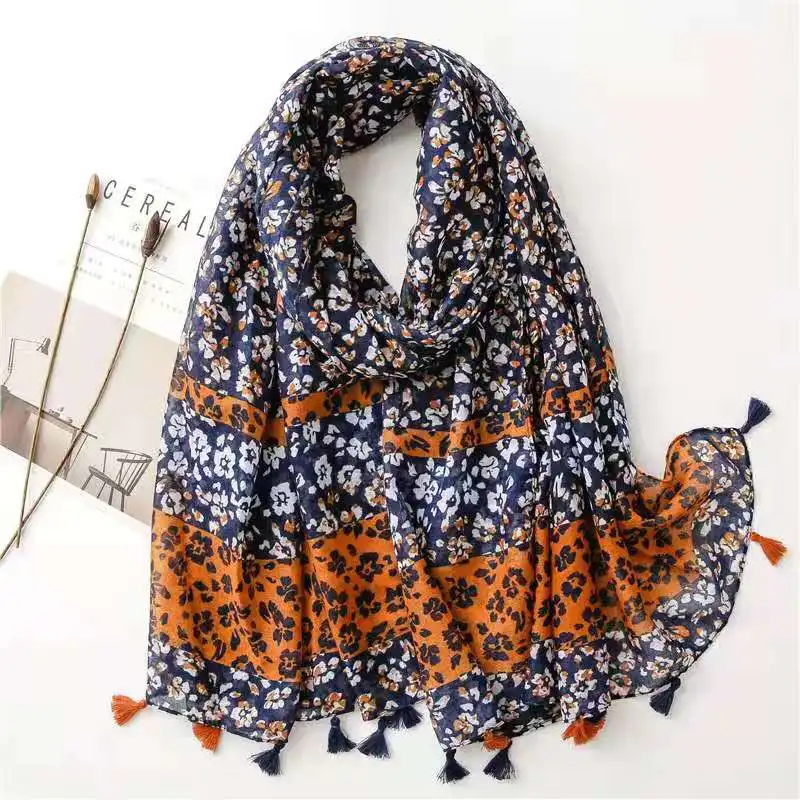 Новинка 2021 г., модный шарф с цветочным принтом Омбре, шали, длинные мягкие шарфы с цветочным принтом, хиджаб, накидка