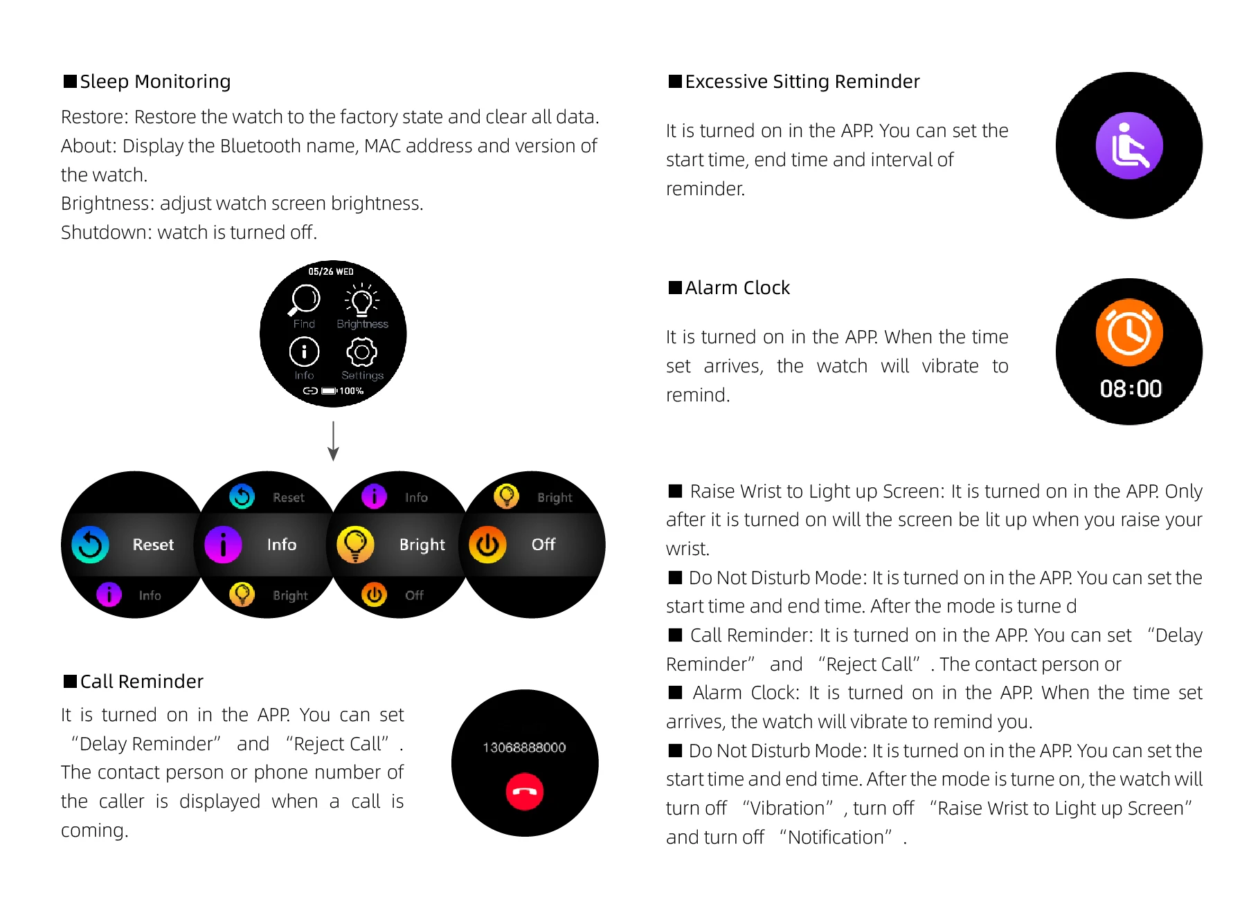 Часы, подсчет шагов, расстояние, калорийность, мониторинг сна, круглосуточный мониторинг сердечного ритма, напоминание о звонках, будильник, напоминание о чрезмерном сидении, уведомления и т. д. Многократный, мониторинг сердечного ритма, Мониторинг Артериального Давления, мониторинг кислорода в крови.
