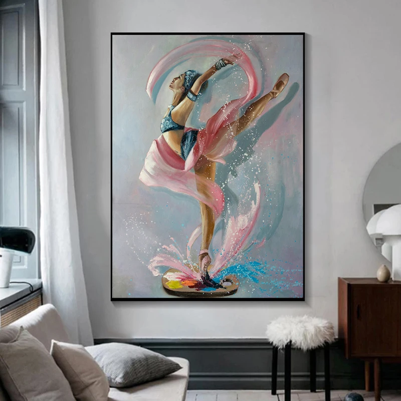 Абстрактная масляная живопись балерины на холсте, плакаты и принты, танцевальная балерина, настенное искусство, декоративная картина для декора гостиной