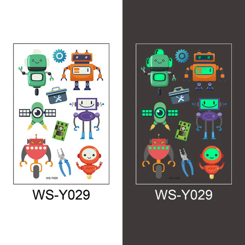 Светящиеся тату-наклейки на лицо, руку, тело, 12 листов