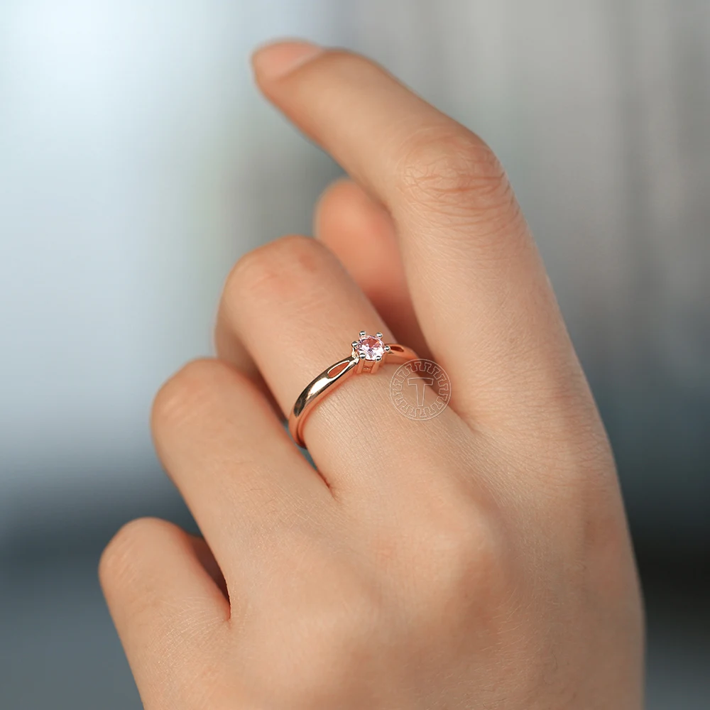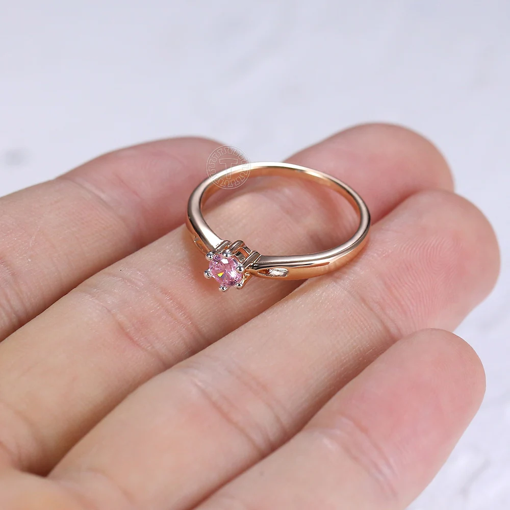 Женское Обручальное кольцо с фианитами, элегантное обручальное кольцо под розовое золото 585 пробы с розовым камнем, Подарочная бижутерия, LGR72
