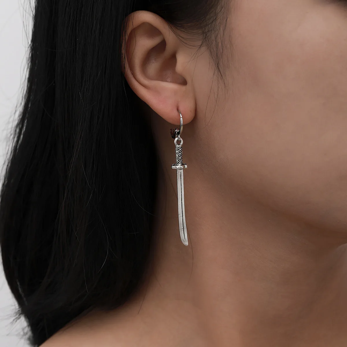 Винтажные серьги-подвески с кинжалом для женщин и мужчин, серебрист...