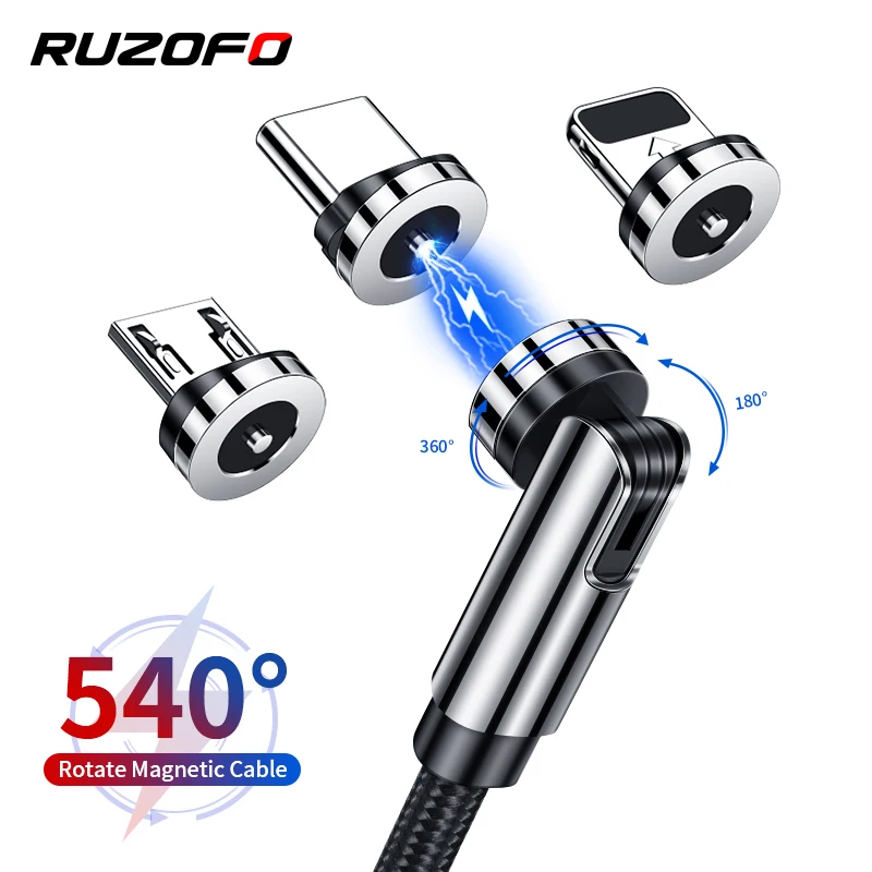 RUZOFO 540 вращаться Магнитный кабель быстрой зарядки магнит зарядное устройство кабель с разъемом Micro USB Type-C кабель мобильный телефон кабель для iPhone Xiaomi
