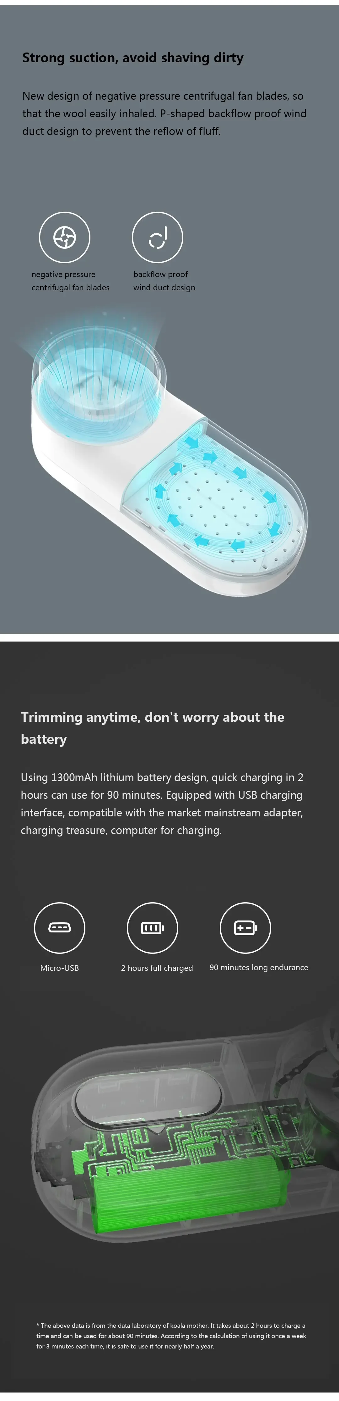 Бренд Xiaomi Mijia Название Триммер Xiaomi Mijia Fuzz Модель продукта MQXJQ01KL Вес нетто 213 г Размер изделия 145x62x65мм Цвет изделия Белый Входные параметры 5V = 1A Номинальное напряжение DC3.7V Номинальная мощность 2 Вт Исполнительный стандарт GB 4706,1-2005GB 4706,9 2008GB 4343,1 2018Особенности: 0,35 мм утолщенная микро-дуговая стальная сетка Разумно оптимизированный Сетчатый Дизайн, избегайте деформации нажатия, подходит для одежды без повреждений. 5 лопастей плавающая головка циклона Точное шлифование, улучшение эффекта сдвига, высокая эффективность сдвига. Сильное всасывание, избегайте грязного бритья Центробежные лопасти вентилятора отрицательного давления, так что шерсть легко вдыхается. P-образная защита от обратного потока конструкция ветрового воздуховода для предотвращения оплавления пуха. 1300 мАч дизайн литиевой батареи Быстрая зарядка в течение 2 часов может использоваться в течение 90 минут. Оснащен интерфейсом USB для зарядки, совместим с основным адаптером рынка, зарядным сокровищем, компьютером для зарядки. Двойная защита, безопасная и удобная Демонтируйте крышку головки триммера или откройте мусорное ведро, машина немедленно отключится, перестанет работать, чтобы избежать случайных травм. Скрытый световой светильник Электрическая индикаторная лампа принимает скрытый дизайн, указывающий работу машины и состояние электрического количества, простой и красивый. Fuzz bin Видимый дизайн окна Легко проверить, нужно ли очищать задник в ящике, уменьшить повторное отверстие для проверки. Чистящая Щетка Маленькая щетка для очистки использует дизайн с длинной ручкой, очистите небольшое положение, например, обрезную головку, мусорное ведро fuzz более удобным. Посылка включает в себя: 1x Mijia Fuzz триммер 1 кабель для зарядки Micro-USB 1x Чистящая Щетка 1 Инструкция Примечание: Куртка, кружевной материал, Неровная поверхность (заклепки, пластиковые декоративные части и т. д.) одежда не рекомендуется. Подробности см. В спецификации продукта.
