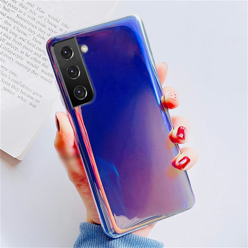 Фиолетовый лазерный цветной прозрачный чехол для Samsung A72 M62 A52 A42 A32 A21S A81 A71 A51 A70E A50 A30S A12 A31 M60S M31 A02S J7 Prime
