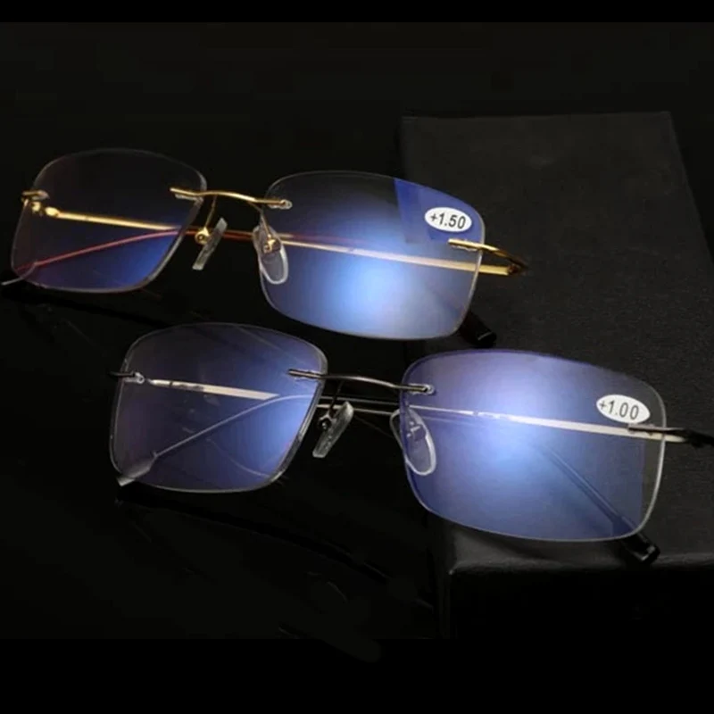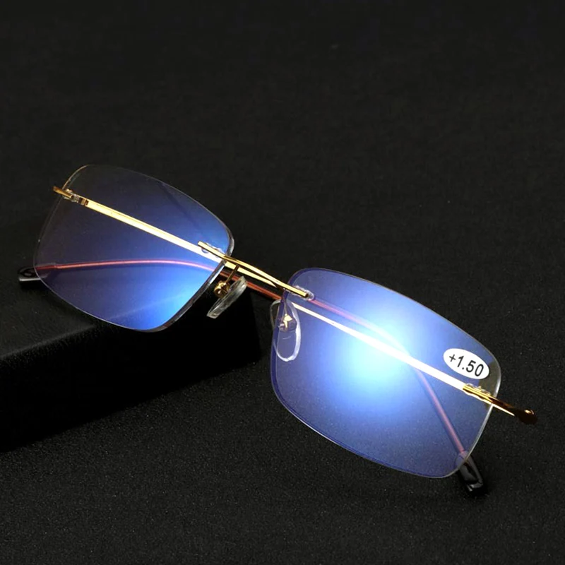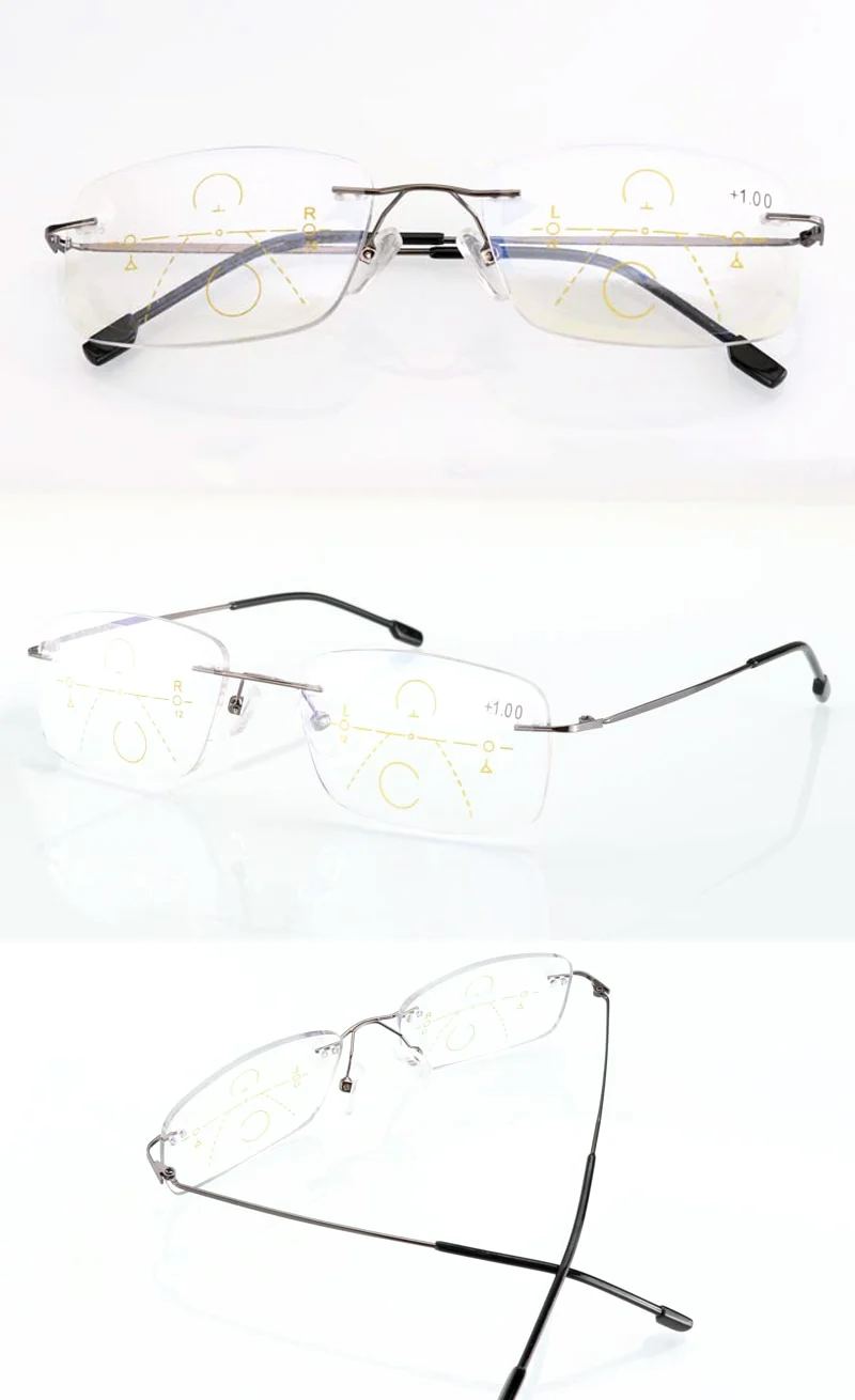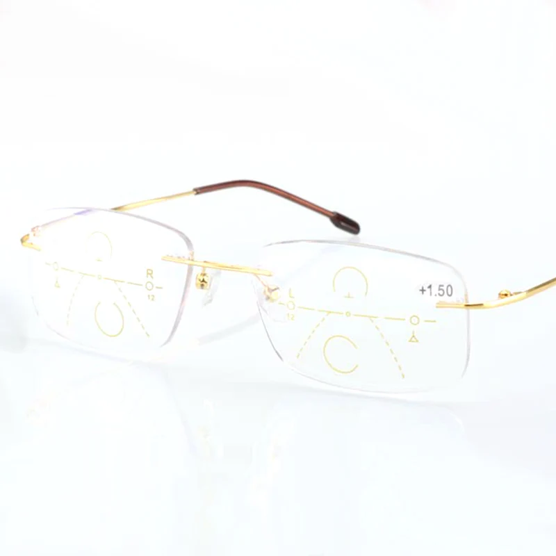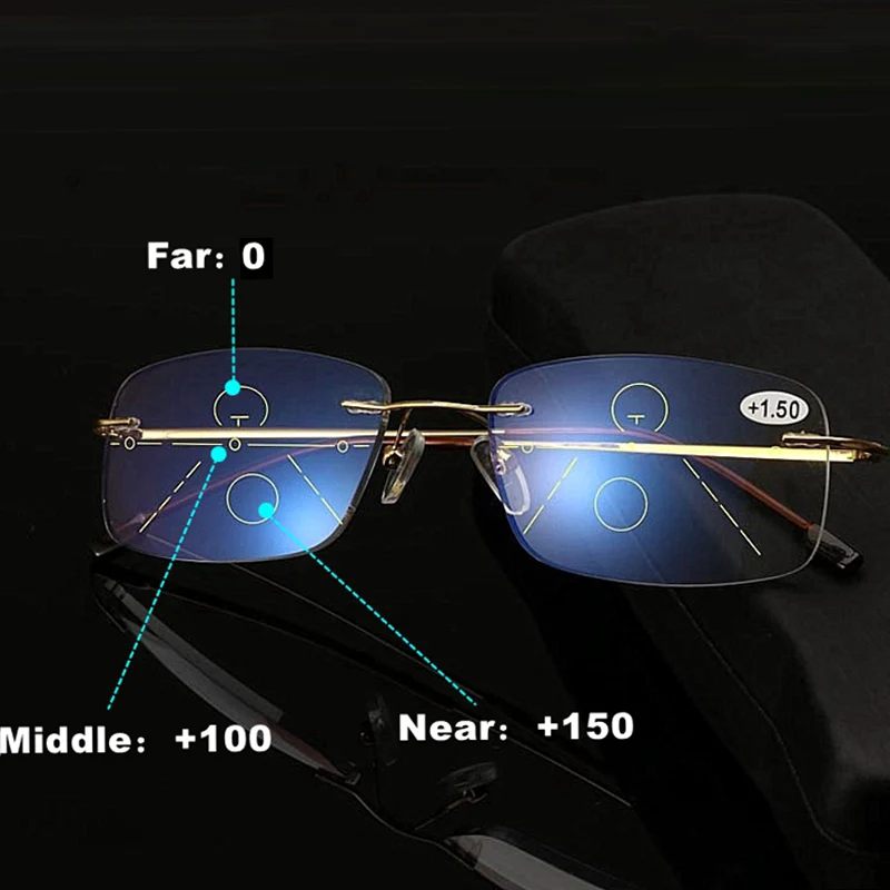 Очки для чтения без оправы с прогрессивными мультифокальными линзами для мужчин и женщин, очки с диоптриями с защитой от синих лучей, легкие титановые очки 150 250 350