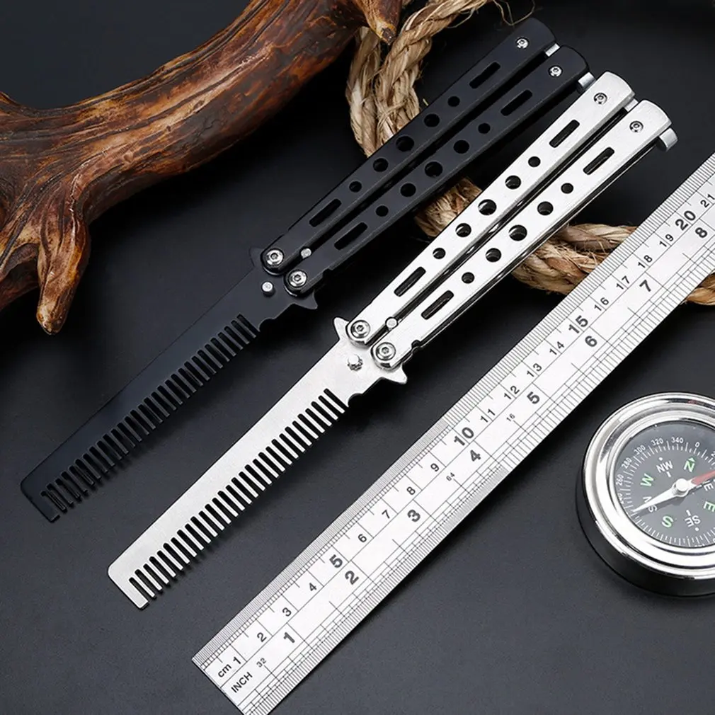 Расческа для волос складная, из нержавеющей стали, для тренировок, в стиле бабочки, чернаясеребристая