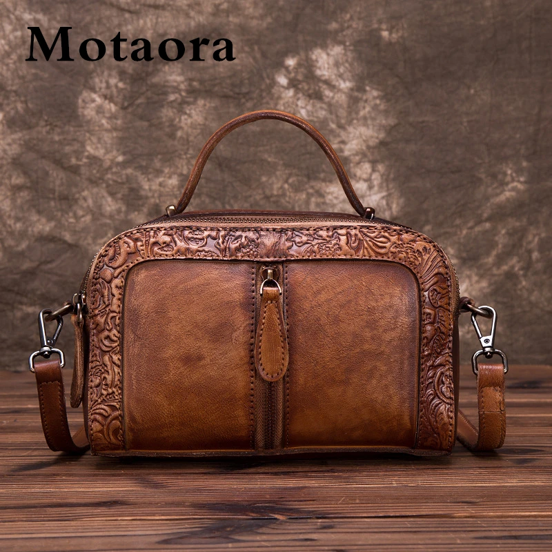 MOTAORA, натуральная кожа, женская сумка с верхней ручкой, винтажные тисненые сумки на плечо для женщин, ручная роспись, Ретро стиль, женская сумка через плечо