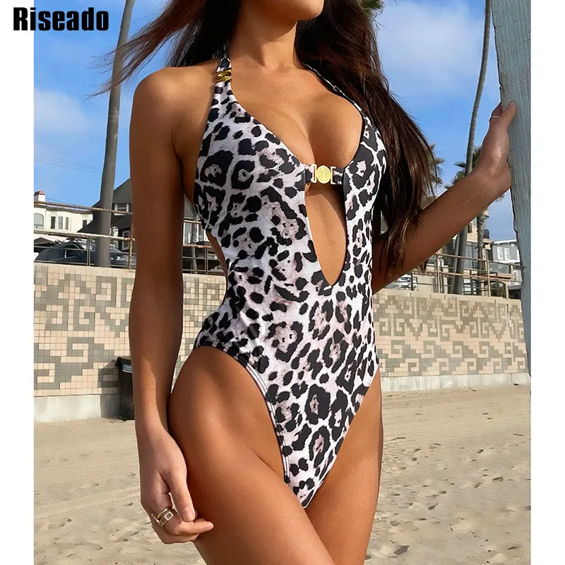 Riseado, погружающийся купальник, женский, цельный, сексуальный, Леопардовый, Женский Монокини, Холтер, купальник, 2022, новое кольцо, связанный купальник, летний