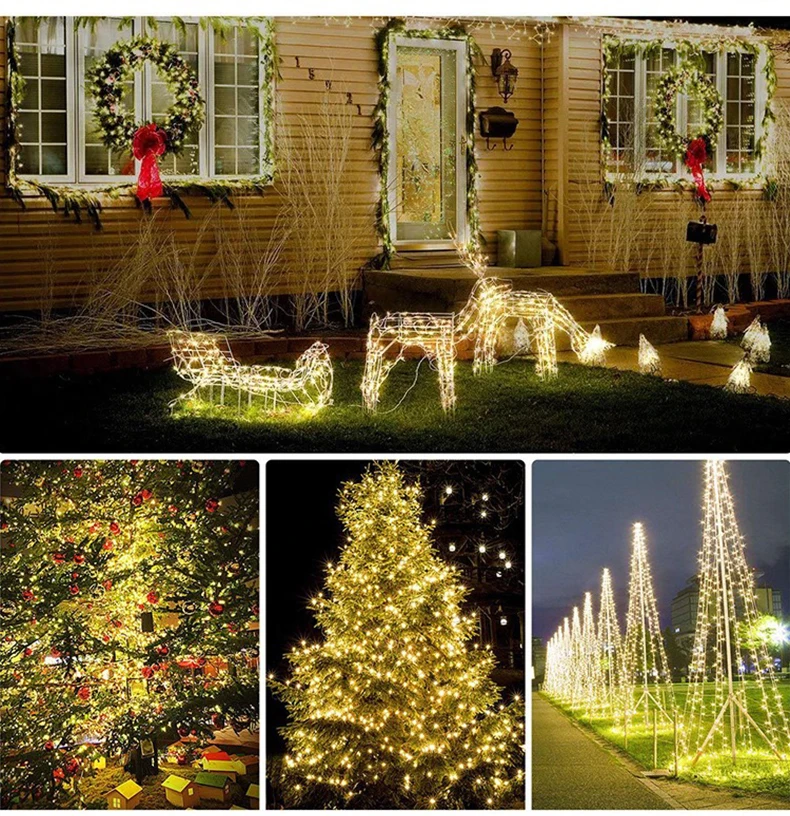 Светодиодная гирлянда на солнечной батарее, водонепроницаемая уличная лампа-лента, Рождественское украшение для сада, 7-42 м, 400 светодиодов