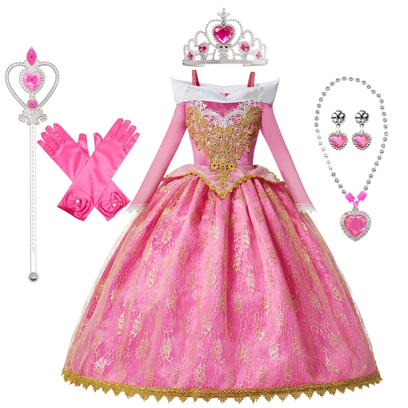 Девушки платье принцессы Авроры для костюмированной вечеринки на Хэллоуин Спящая красавица для принцессы; Платья; Костюм на Рождество вечерние подарок на день рождения розовое платье для детей возрастом от 3 до 10 лет