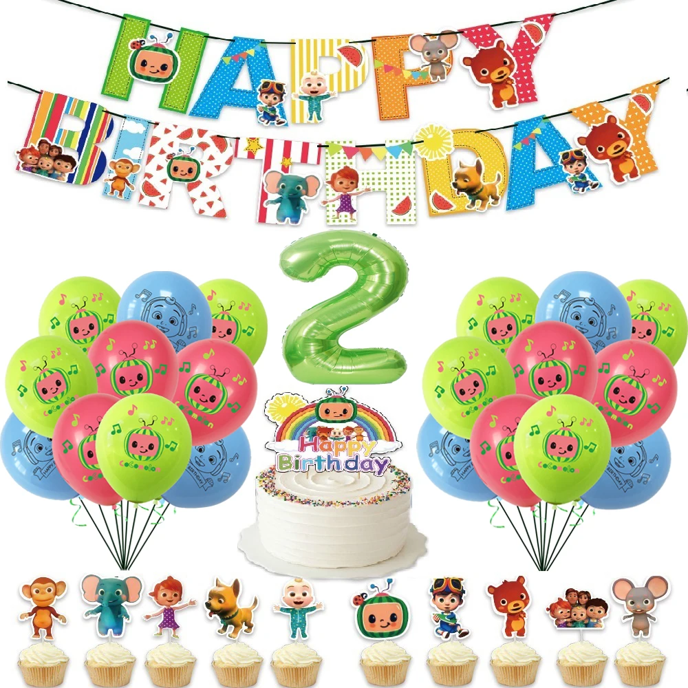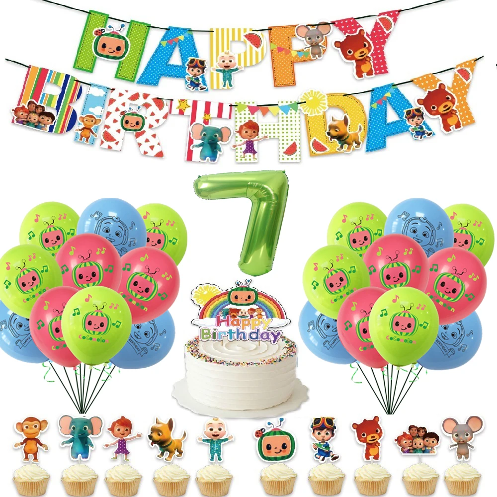 Набор Cocomelon воздушные шары с 40-дюймовый светодиод номер шары из латекса фон с флагами точками для День рождения баннер вставка для торта Декор ТВ Показать игрушки для формирования для детей