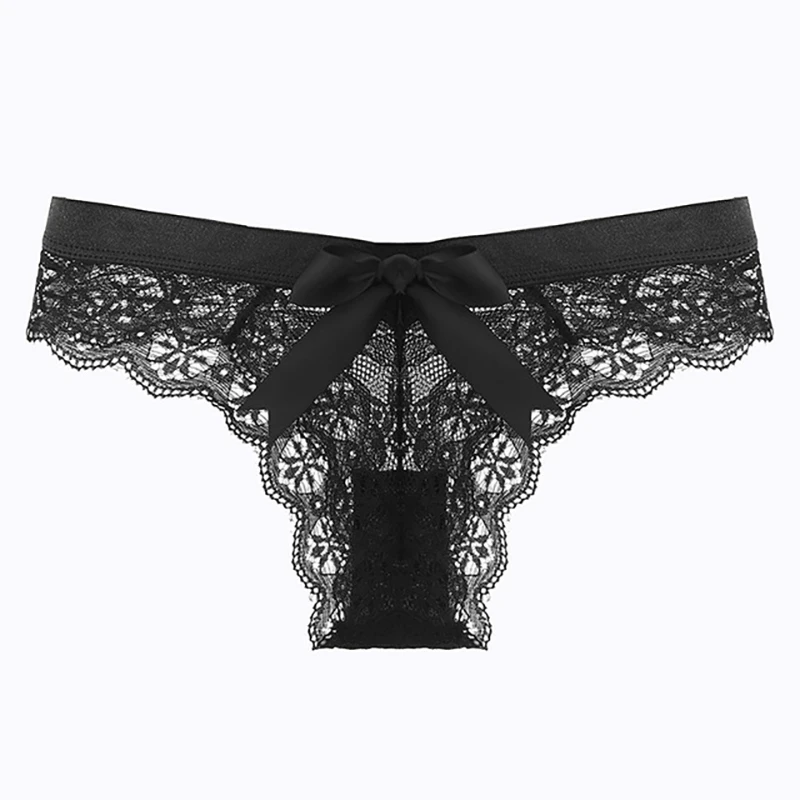 Новые прозрачные сексуальные стринги, кружевное нижнее белье, женские трусики с заниженной талией, женское нижнее белье с бантом на спине, простые Бесшовные женские трусики