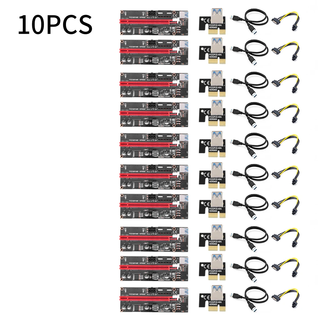 Райзер PCI-E 009S Express 1X 4x 8x 16x, 10 шт., удлинитель PCI E USB Riser 006C, двойная 6-контактная карта адаптера SATA 15pin для