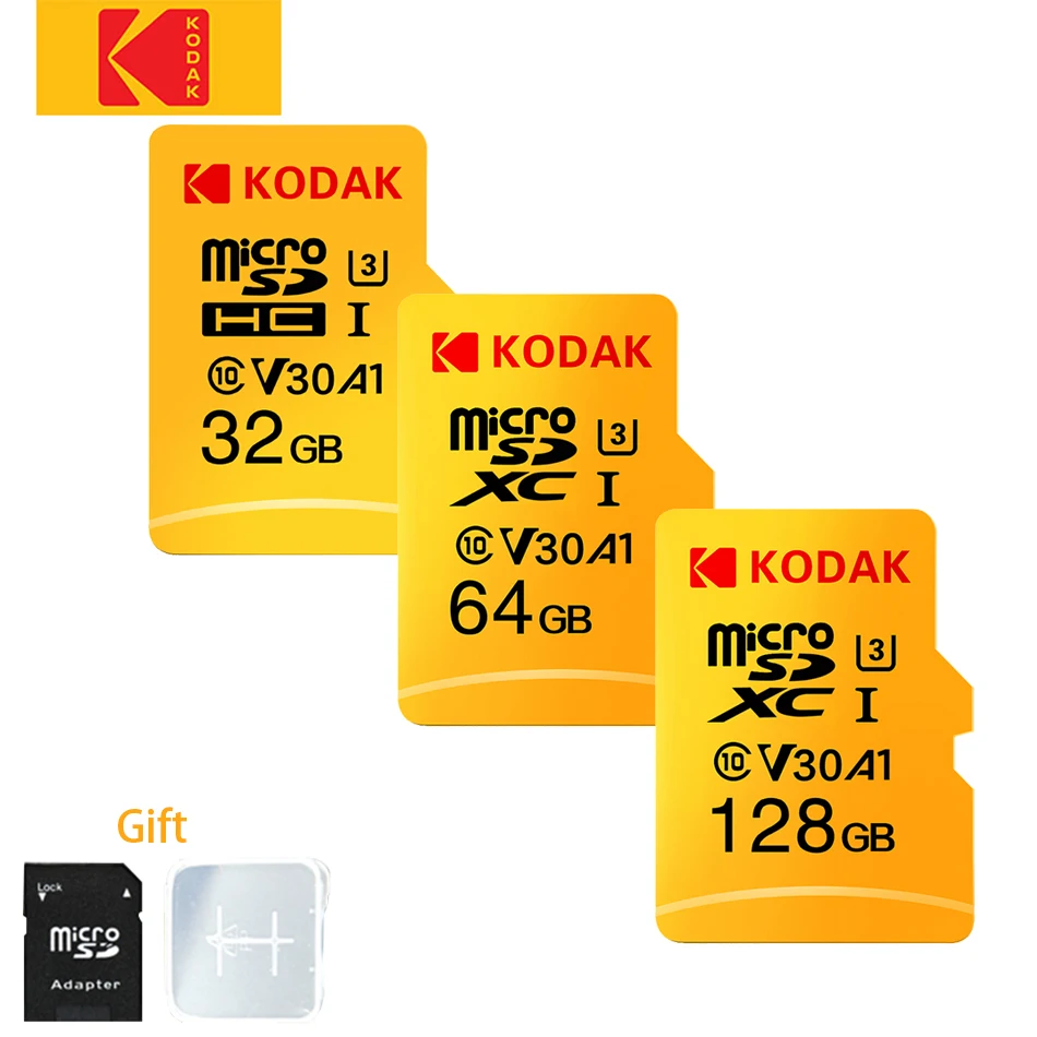 Карта памяти Kodak высокоскоростная C10 u1 u3, v30, карта micro sd на 16 ГБ, 32 ГБ, 64 ГБ, 128 ГБ, tarjeta, мини-карта TF на 256 ГБ, бесплатный адаптер sd