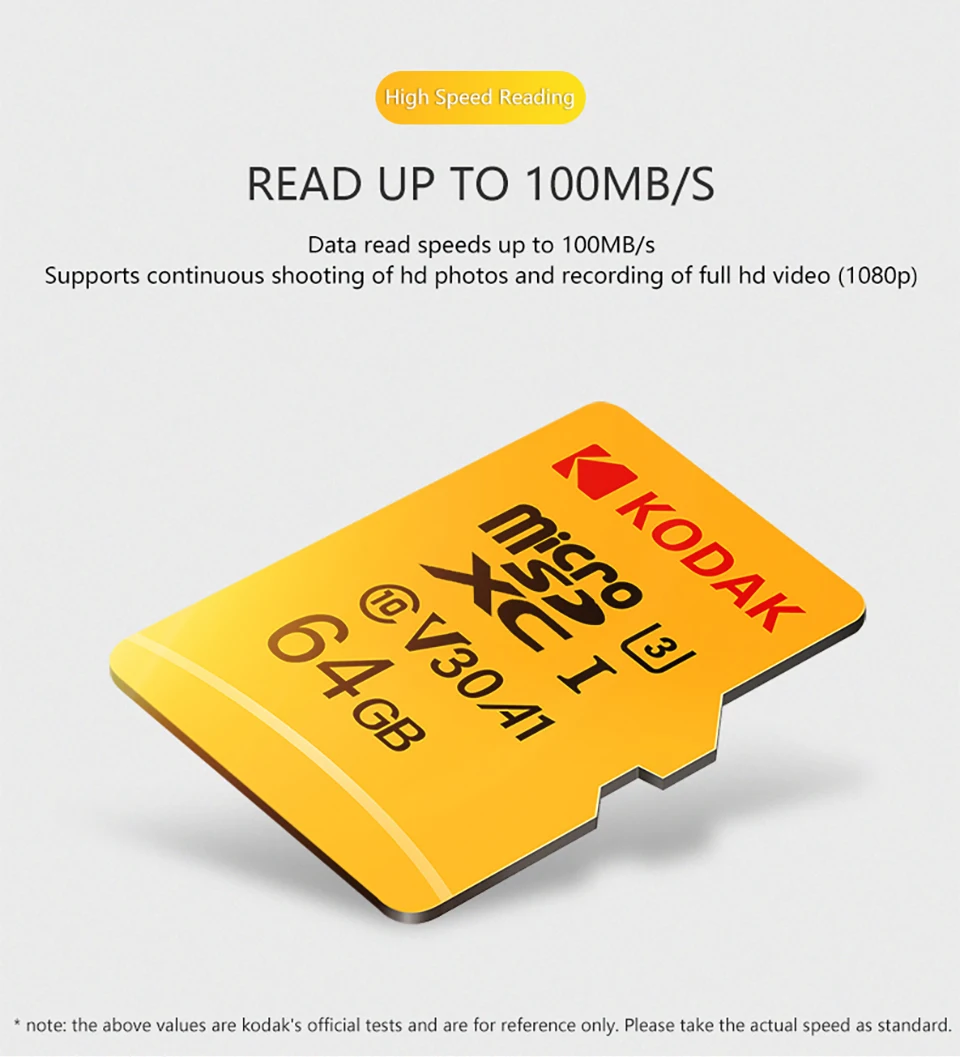 Карта памяти Kodak подходит для смартфонов, профессиональных камер, hd камер, планшетных компьютеров, совместимых устройств с tf-картами, таких как dash CAM, GPS, оборудование для мониторинга, БПЛА и ТВ-стерео.