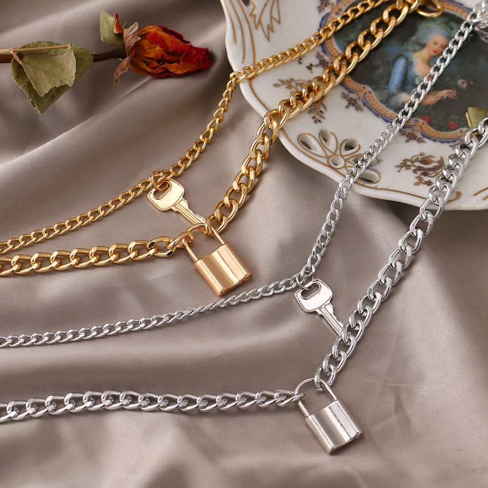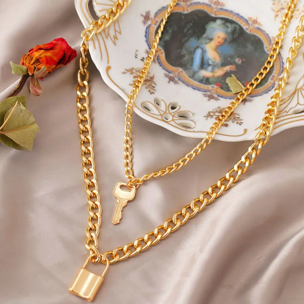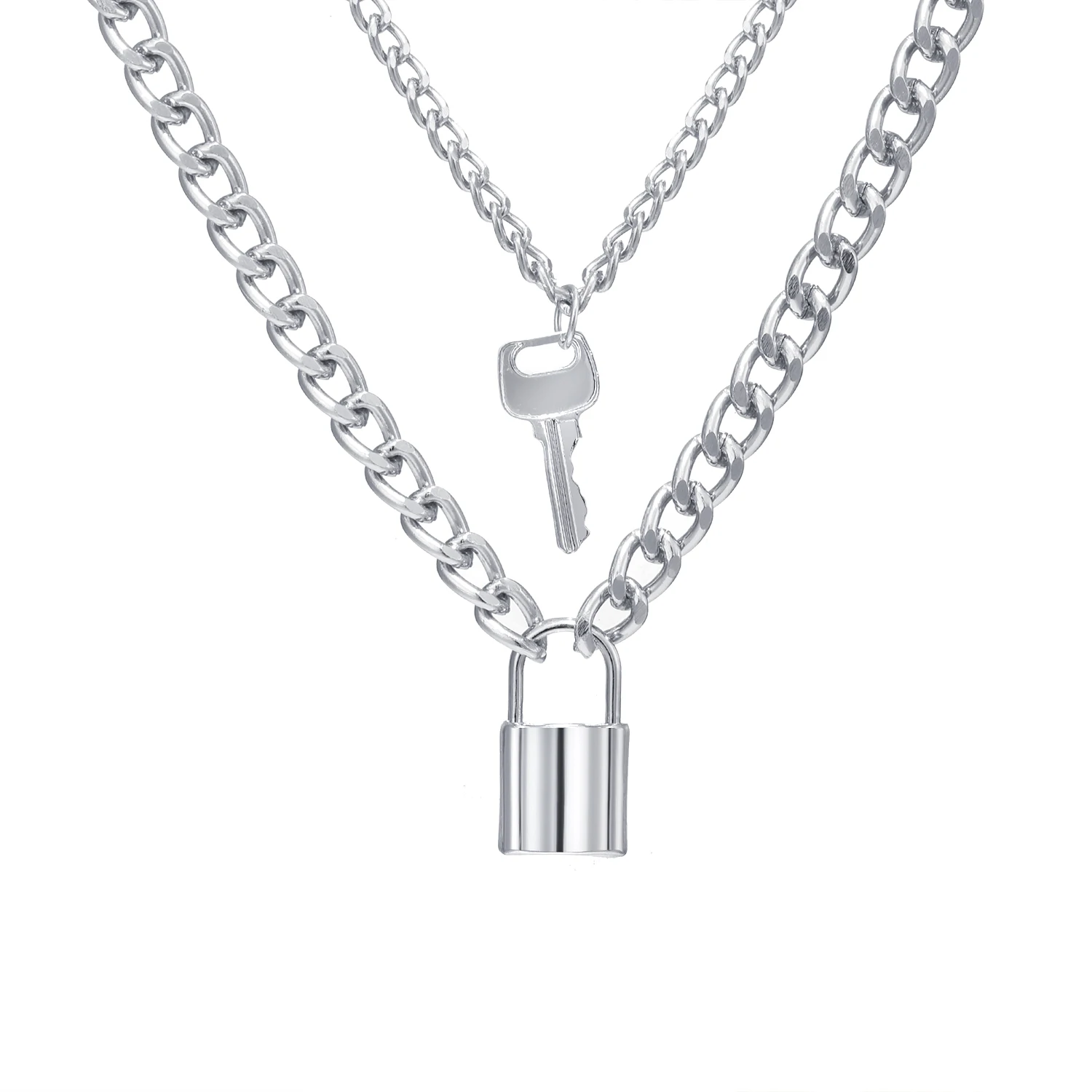 New DesignMultilayer Lock Key Long Pendant Necklace