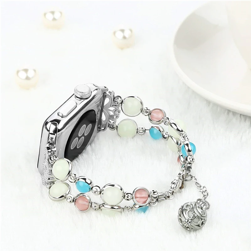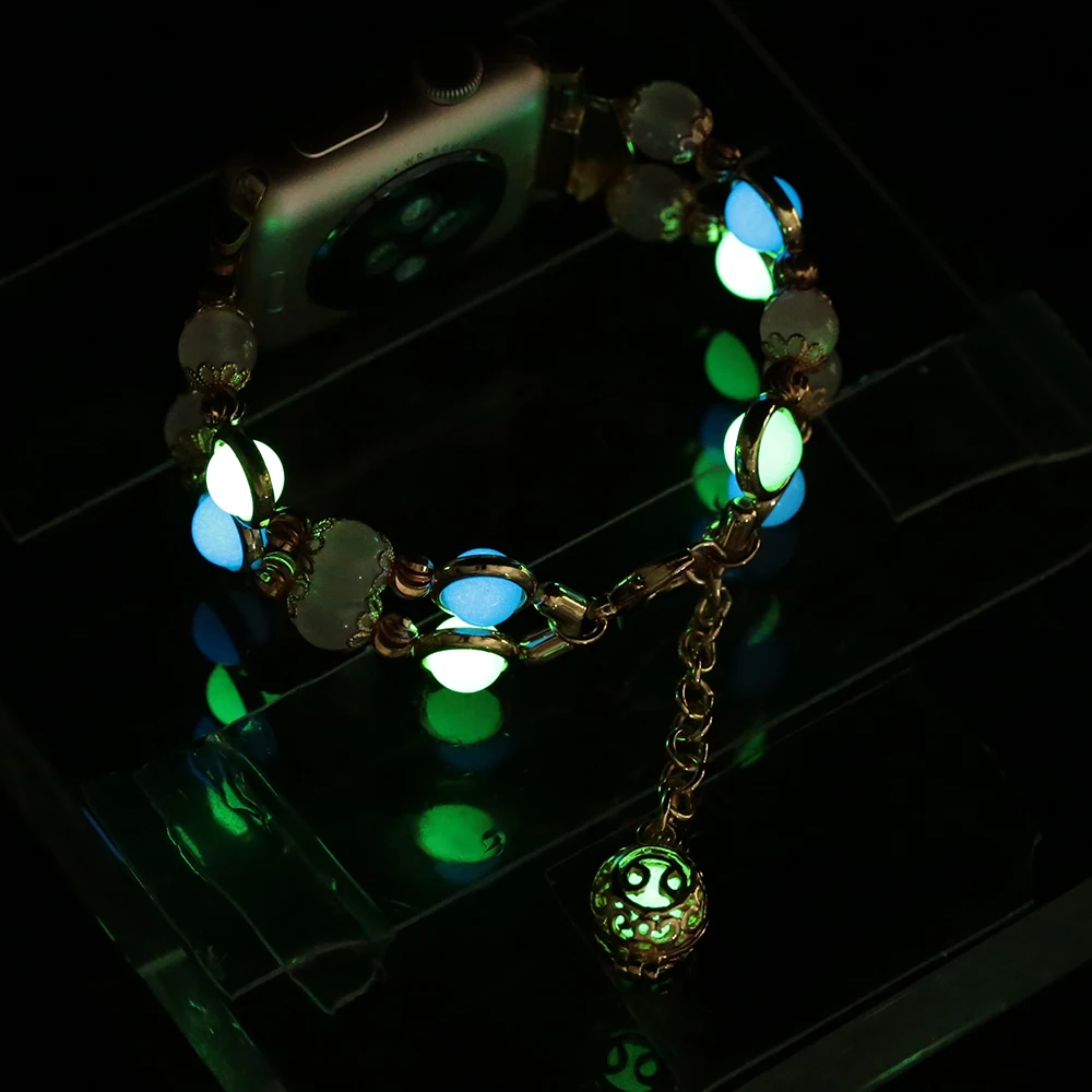 Светящиеся бусины, браслет для Apple Watch 40 мм 44 мм, женская модель, подходит для iWatch серии 7 6 SE 5 4 3 38 мм 42 мм 41 мм 45 мм