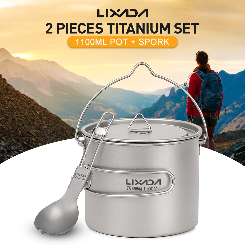 Lixada легкий Титан горшок с складная ложка-вилка для кемпинга на открытом воздухе Пеший Туризм рюкзак Пикник 750 мл900 мл1100 мл