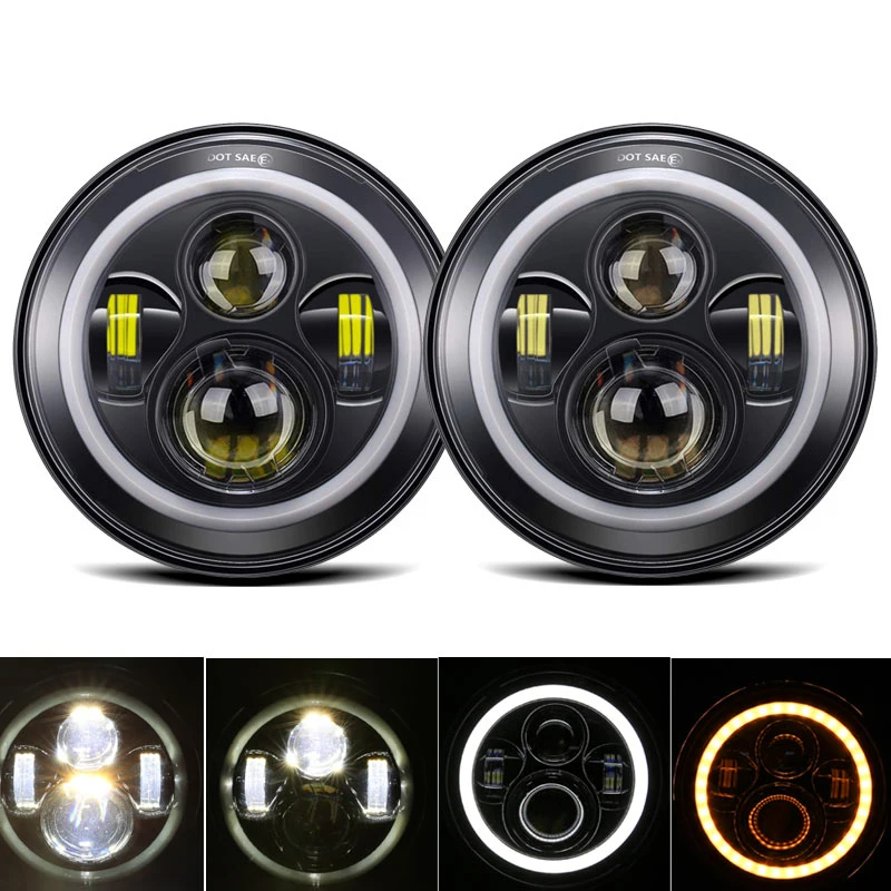 2 шт. 7 дюймов светодиодный фар головного света с Halo Кольцо янтарь поворотник для lada niva 4x4 suzuki samurai 7 "DRL галогеновые фары головного света для ВАЗ 2101