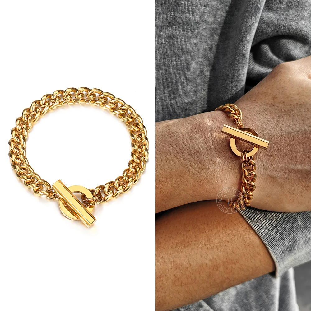 Браслет для мужчин 9 мм Золотой Серебряный цвет нержавеющая сталь Снаряженная кубинская цепочка гравировка персонализированные ID браслет ювелирные изделия LTBS025