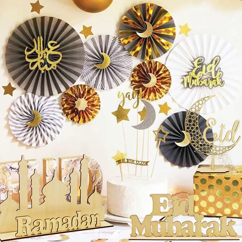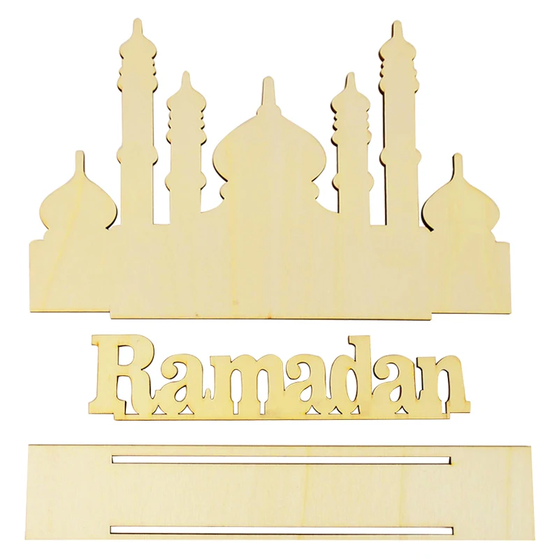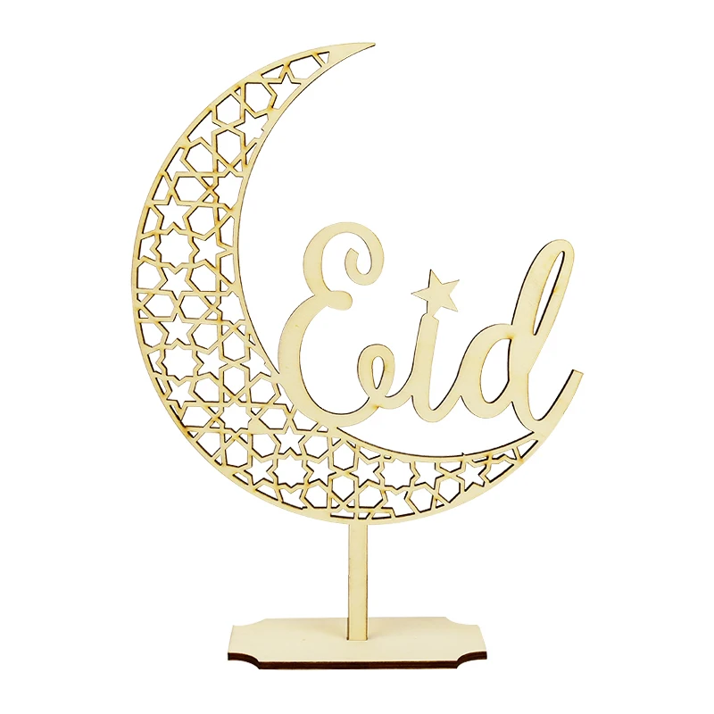 ИД Мубарак, отлично подходят для украшения Рамадан луна кулон Изделия из дерева для дома Ислам мусульманские Вечерние Настольный Декор поставки подарки