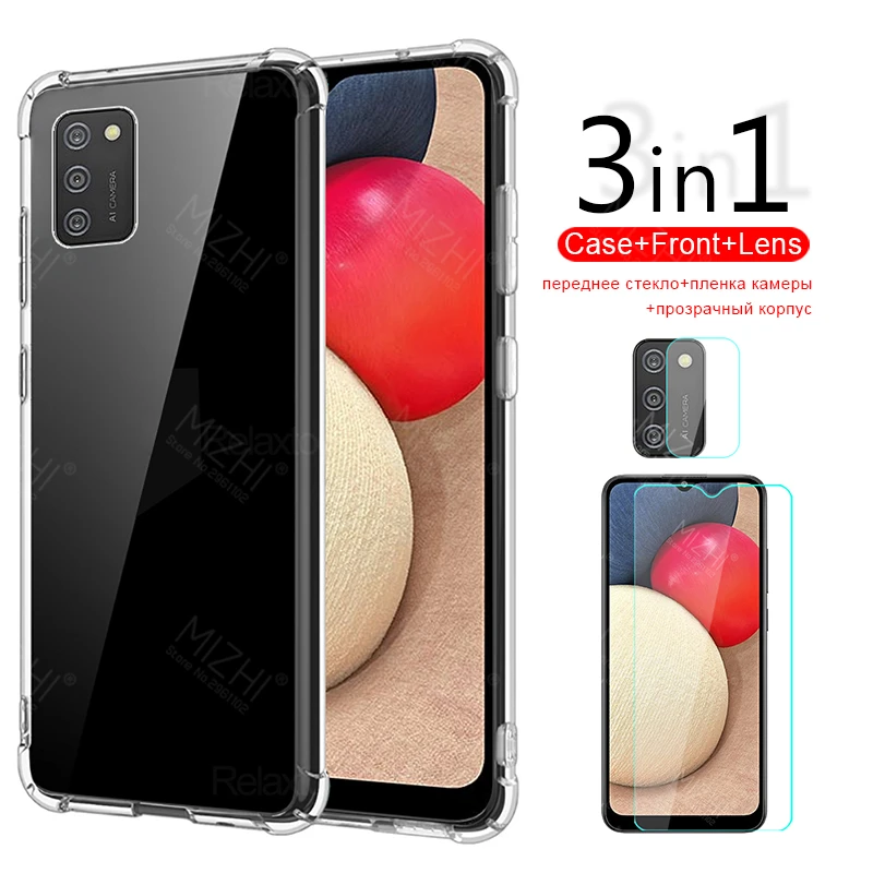 Чехол 3 в 1 для Samsung Galaxy A02s, закаленное стекло для Samsung Galaxy A 02s, A02s, A025F, SamsungA02s, задняя крышка для камеры Samsun