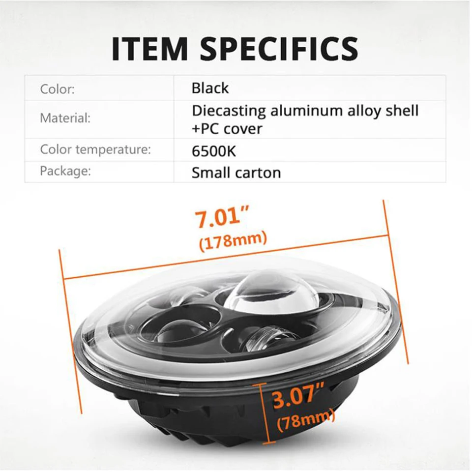 Мотоцикл 7 дюймов светодиодные фары 7 ''LED DRL H4 Halo Кольцо Янтарный указатель поворота налобный фонарь для JeepJK TJ Touring Lada 4x4 Yamaha NivaСпецификация:Напряжение: 9-30 вМощность: 50 ВтЦветовая температура: 6000KЛюмен: 4800LMРазмер изделия: 7''Высота изделия: 3,07''Водонепроницаемость: IP67Рабочая температура: -40 + 85 °CМатериал: корпус из литого алюминияТип интерфейса: H4 с проводкой H13Срок службы: 50000 часовПреимущества продукта:1. Импортные лампы очень яркие, концентрированный светильник, энергосберегающие и энергосберегающие, гуманизированная установка и съемное положение карты, реальные материалы, более безопасные.2. Высокая производительность, водонепроницаемый, пыленепроницаемый, анти-туман, может использоваться в чрезвычайно суровых условиях.3. Оригинальный дизайн, изысканный внешний вид, Высокая теплоотдача, мягкий светильник, предотвращающий головокружение.4. Использование американских лампочек Kerui, энергосбережение, Защита окружающей среды, длительный срок службы, высокое качество.5. Отрегулируйте кронштейн для легкой установки и использования.Посылка включает в себя;Светильник 1 шт. или светильник 2 шт.