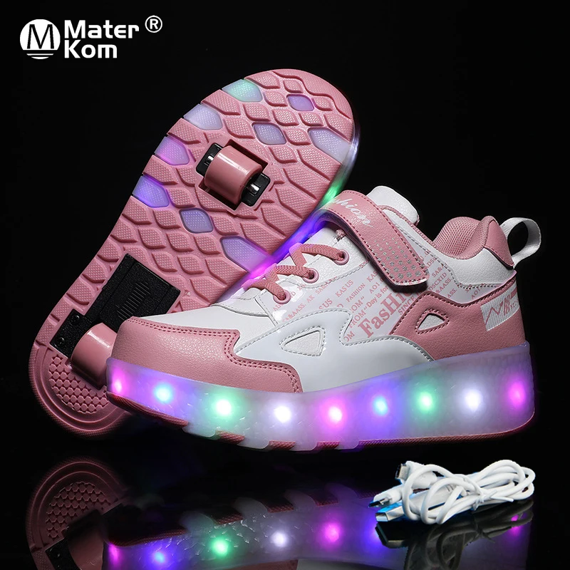 Размеры 28-43 ребенка с зарядкой от USB; Обувь для катания на роликах для маленьких мальчиков и девочек со светодиодной подсветкой светящиеся кроссовки обувь на колесиках