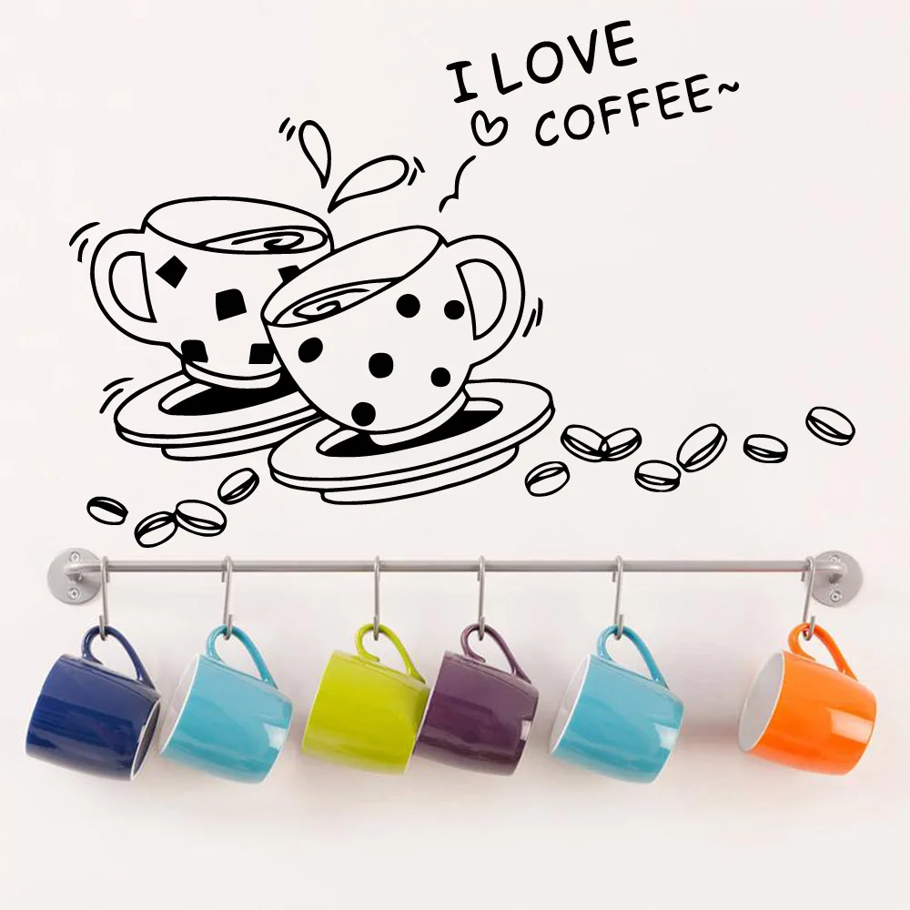 Разноцветная кофейная чашка виниловые наклейки на стену, домашний декор для детской комнаты, гостиной
