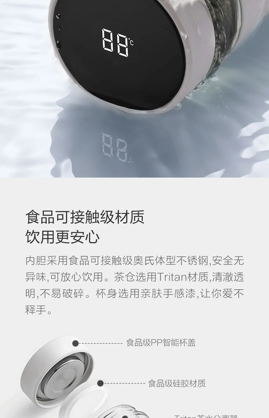 Умная чайная кружка Xiaomi Quange, из нержавеющей стали 316, с отдельным дисплеем температуры для хранения чая, для офиса