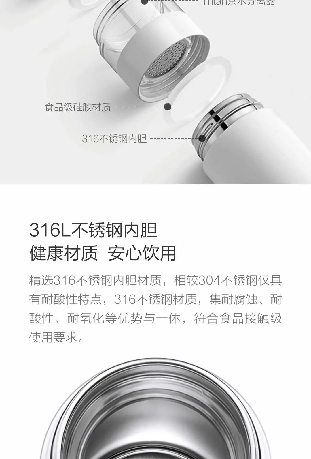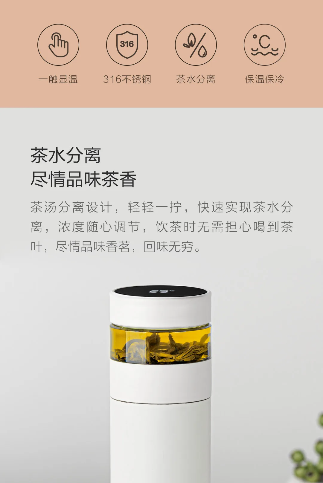 Умная чайная кружка YouPin Quange из нержавеющей стали 316, отдельный чайный склад, дисплей температуры, портативный термос, чашка для офиса