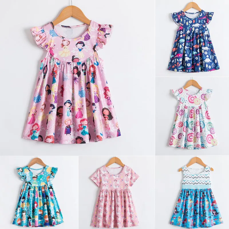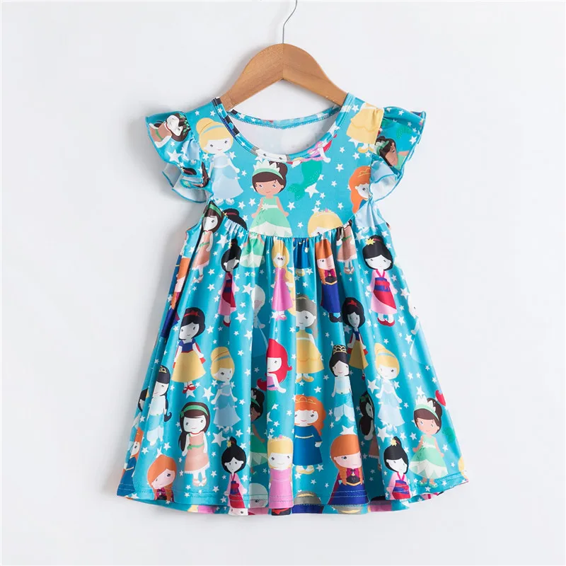 От 2 до 6 лет Детские платья для девочек, детское летнее платье с расклешенными рукавами мультфильм печатных Открытое платье без рукавов для детей ясельного возраста праздничное вечерние Одежда