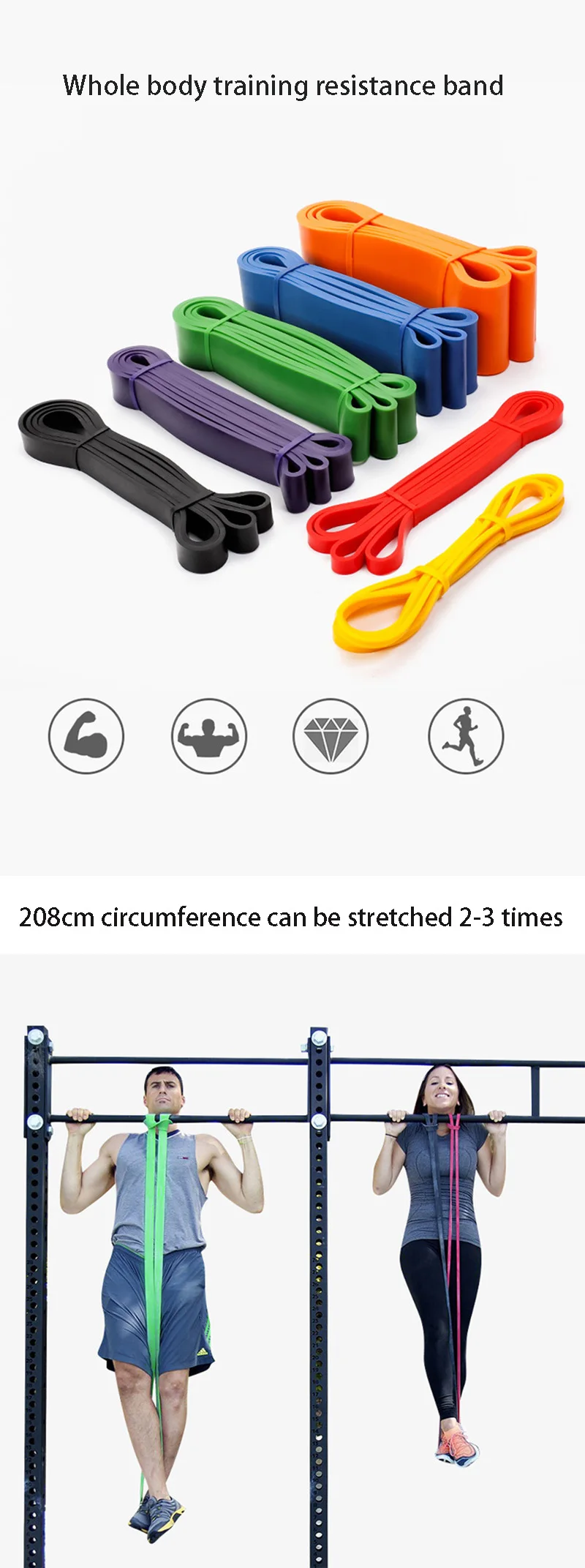 Сверхдлинные Эспандеры для тренировок Ruber 2080, гимнастический эспандер мм, для кроссфита, подтяжки, кроссфита, укрепления мышц, унисекс