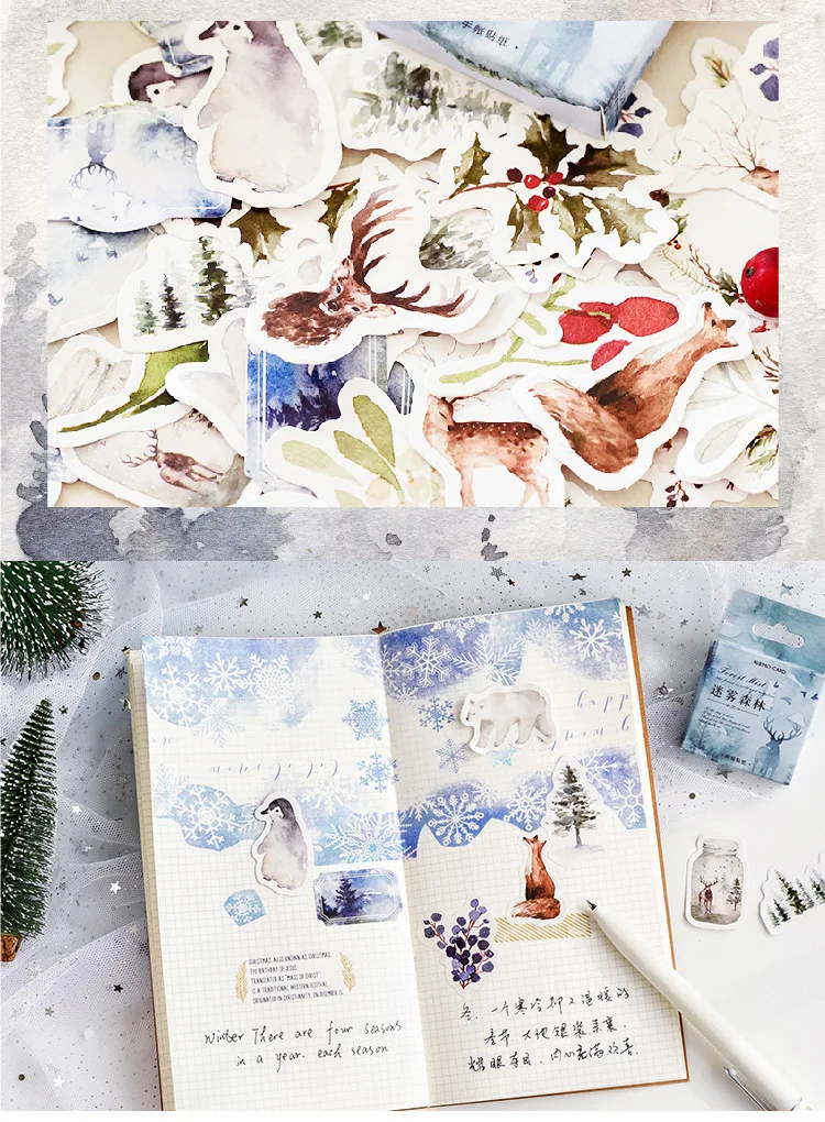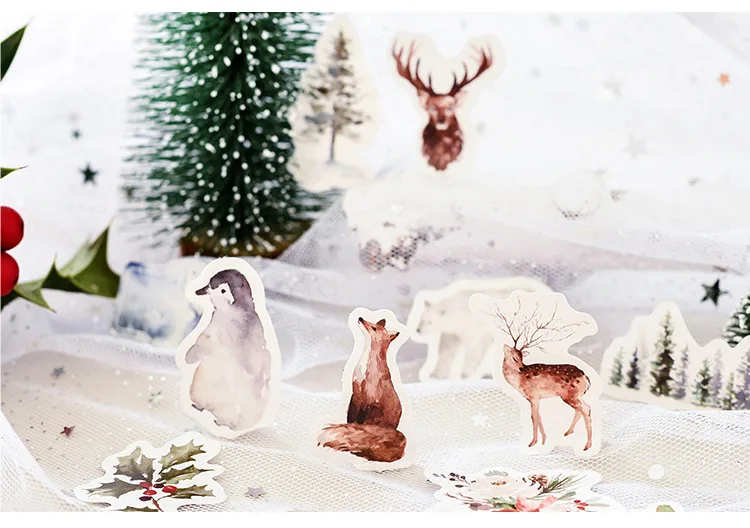 XINAHER 46 шт.лот наклейка на Зимний лес с маленькими животными нак...