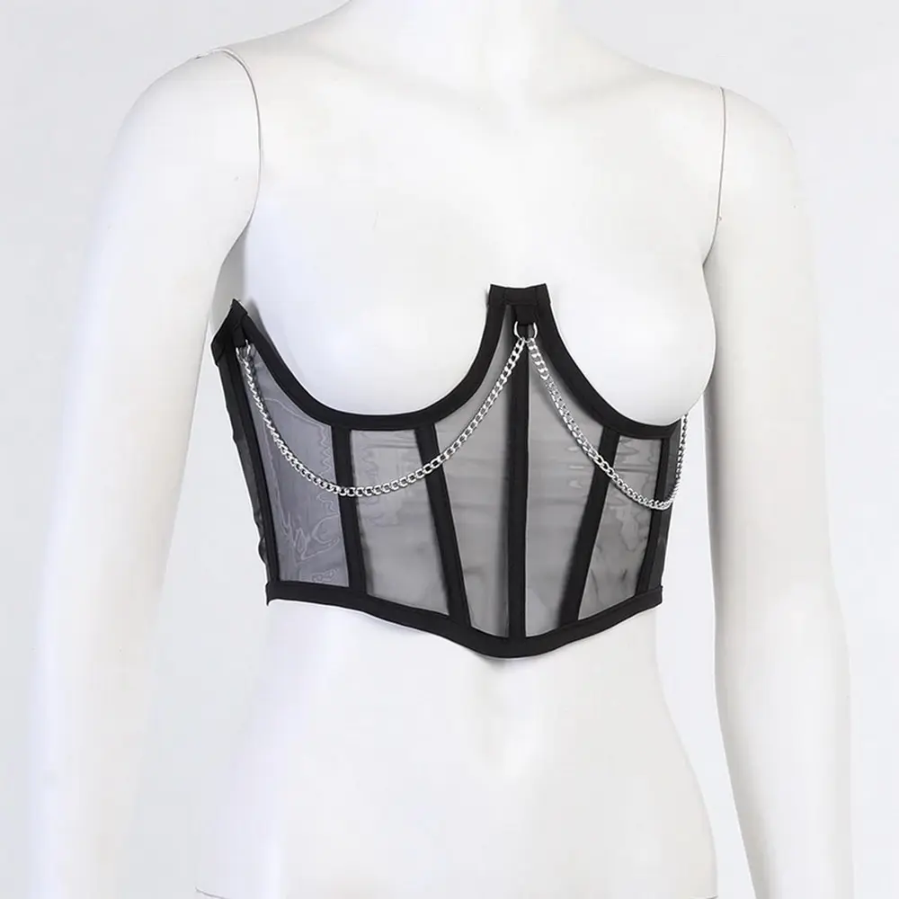 Корсет женский с металлической цепочкой, винтажный сетчатый прозрач...