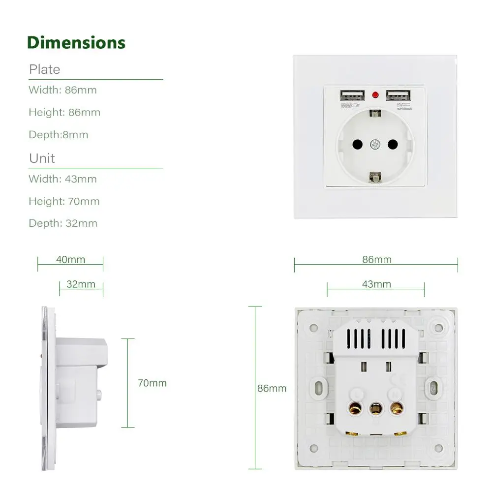 Wall Box Diameter:Socket ≥60mm ,USB Socket≥70mm