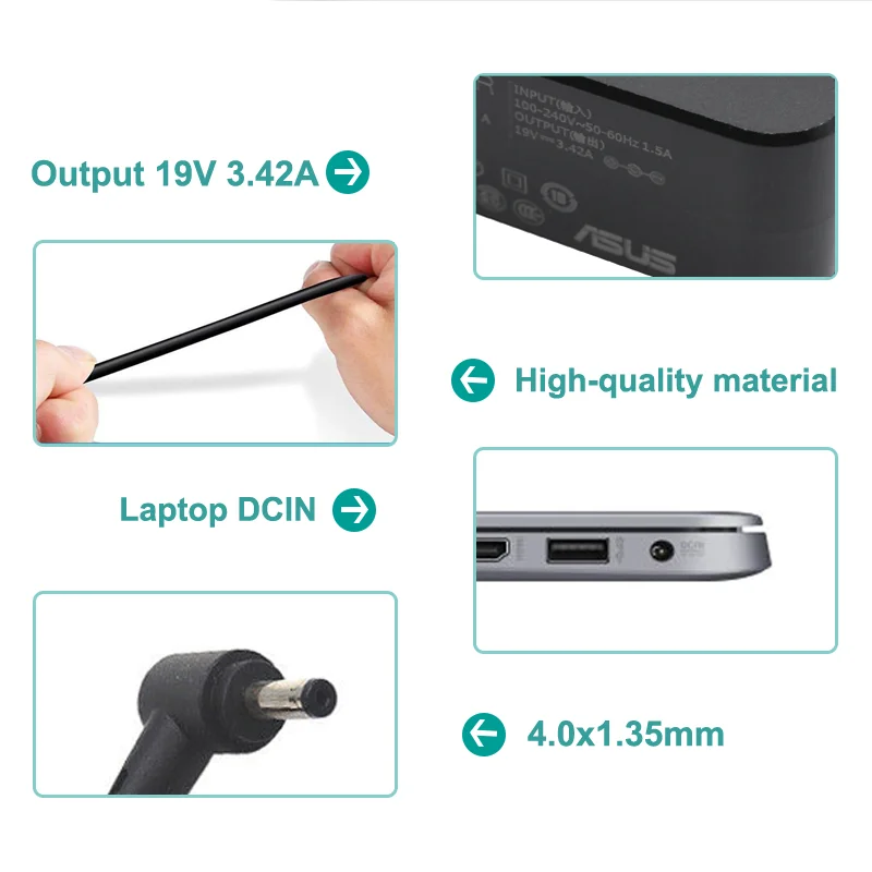 Зарядное устройство для ноутбука Asus S4100U, S4000UA, S4200U, S5100U, U303L, S406U, TP501U, FL5900, FL8000, 19 в, 4,0 А, 65 Вт, 1,35 x мм