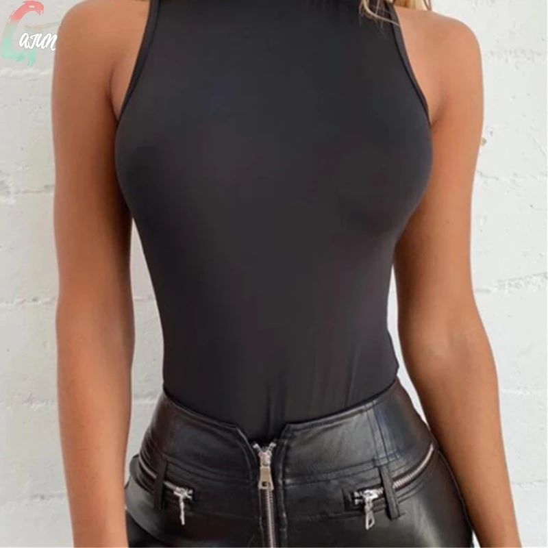 Боди женское с высоким воротом, пикантный Топ без рукавов, с открыт...
